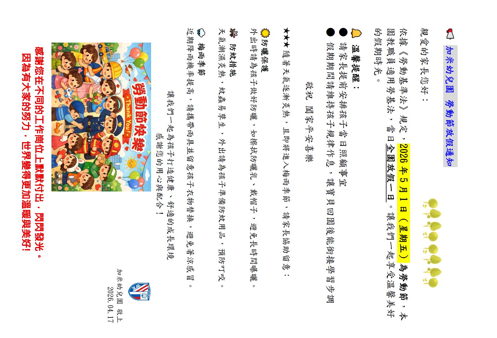 五一勞動節放假通知